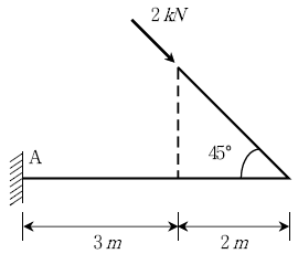 따라서, A점에서의 휨모멘트의 크기는 50kN⋅m이다. 이를 단순화하면 5√2kN⋅m이 된다. 이는 힘의 합력과 거리의 곱으로 계산되는데, √2는 2와 2의 제곱근을 곱한 것이므로, 단순화한 결과가 5√2가 된다.