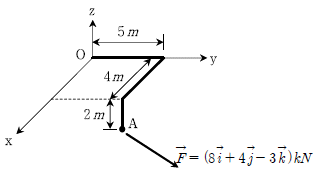 에 의해 O점에 발생되는 모멘트 벡터[kNㆍm]는? (단,