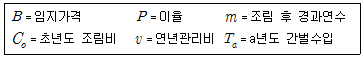 Faustmann의 임목비용가를 구성하는 인자의 수식으로 옳은 것은?
