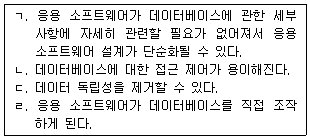 [과목 구분 없음] 데이터베이스 관리 시스템(database management system)을 구축함으로써 생기는 이점만을 모두 고른 것은?