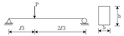 그림과 같이 직사각형단면을 갖는 단순보에 하중 P가 작용하였을 경우, 최대 전단응력과 최대 휨응력을 계산한 값은? (순서대로 최대 전단응력, 최대 휨응력)