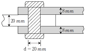 그림과 같은 연결에서 볼트가 지지할 수 있는 인장력[kN]은? (단, 허용전단응력 vsa=200MPa, 허용지압응력 fba=300MPa, π=3으로 계산한다)