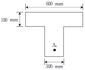 그림과 같은 철근콘크리트 T형보의 휨강도 계산시 플랜지 상연에서 중립축까지의 거리와 가장 가까운 값[mm]은? (단, 콘크리트 압축강도 fck=25MPa, 철근의 항복강도 fy=300MPa, 철근 단면적 As=5,000mm2이다)