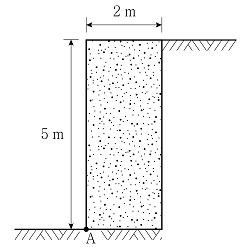 그림과 같이 사질토로 뒷채움된 철근콘크리트 옹벽의 A점에서의 전도 안전율은? (단, 흙의 내부마찰각 ø=30°, 흙의 단위중량 γ=18kN/m3, 철근콘크리트의 단위중량 mc=25kN/m3이다.)