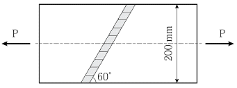 그림과 같이 맞댐용접을 한 두께 12mm의 강재판에 축방향 인장력 P=300kN이 작용할 때, 용접부에 발생하는 인장응력[MPa]은? (단, 용접 시점 및 종점부의 크레이터 영향은 무시하고, KDS 14 30 25 : 2019를 따른다.)