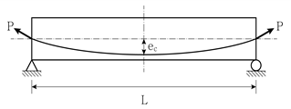 그림과 같은 프리스트레스트 콘크리트 단순보의 지간 중앙에서 프리스트레스 힘 P에 의한 솟음의 크기가