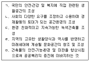 「건축기본법」에서 규정하여 건축의 공공적 가치를 구현하고자 하는 기본이념만을 모두 고르면?