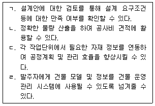 건물정보모델링(BIM: building information modeling) 기술을 도입하여 설계단계에서 얻을 수 있는 장점들만을 모두 고르면?