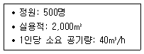 1인당 공기공급량(m3/h)을 기준으로 할 때 다음과 같은 규모의 실내 공간에 1시간당 필요한 환기 횟수[회]는?