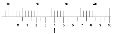 아들자 눈금은 4이고, 어미자 눈금은 13.0mm + 0.4mm = 13.4mm 이다.