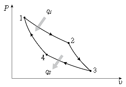 따라서, 상태 4에서 상태 1로 가는 과정은 가역단열압축과정이다. 이는 기체가 열을 외부에서 흡수하면서 압축되는 과정으로, 열기계의 효율을 높이기 위해 필요한 과정이다.