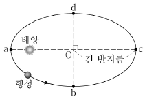 태양을 중심으로 하는 타원 궤도에서 행성은 태양과의 거리가 변하면서 운동합니다. 이 때, 행성은 태양과 가까울수록 빠르게 움직이고 멀어질수록 느리게 움직입니다. 따라서, a점에서 b점까지 운동하는 데 걸리는 시간은 c점에서 d점까지 운동하는 데 걸리는 시간보다 짧습니다.