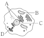 그림은 세포의 구조를 나타낸 것으로 A~D는 각각 핵, 중심립, 리보솜, 미토콘드리아 중 하나이다. 이에 대한 설명으로 옳은 것은?