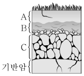 그림은 성숙한 토양의 단면을 나타낸 것이다. 이에 대한 설명으로 옳지 않은 것은?