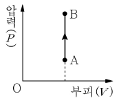 그림은 실린더 속에 들어있는 이상기체의 상태를 A에서 B로 변화시켰을 때 A와 B에서의 압력과 부피를 나타낸 것이다. 이 과정에 대한 설명으로 옳은 것은?