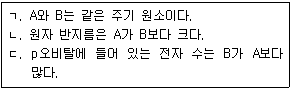 바닥 상태의 원자 A와 B에 대한 설명으로 옳은 것을 <보기>에서 모두 고르면? (단, A와 B는 임의의 원소 기호이다.)
