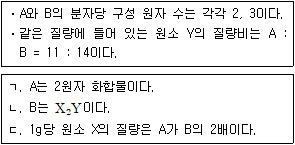 <보기 1>은 X와 Y로 이루어진 화합물 A, B에 대한 설명이다. 이에 대한 설명으로 옳은 것을 <보기 2>에서 모두 고른 것은? (단, X, Y는 임의의 원소 기호이다.)