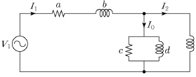 [과목 구분 없음] 실제 변압기 등가회로의 1차측이 <보기>와 같을 때, 등가회로의 회로 상수 중 누설 자속에 의한 영향을 가장 많이 받는 것은? (단, V1, I1, I2, I0는 각각 입력전압, 1차측 전류, 1차측 부하전류, 여자 전류다.)