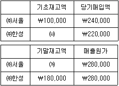[과목 구분 없음] <보기>는 ㈜서울과 ㈜한성의 매입 및 매출에 관련된 자료이다. ㈎와 ㈏의 금액은? (단, 재고감모손실 및 재고평가손실은 없다고 가정한다.)