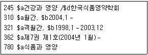 [과목 구분 없음] 다음은 ‘KORMARC 통합서지용’ 형식을 이용하여 연속간행물 「건강과 영양」에 대해 작성한 서지레코드이다. 이 서지레코드를 보고 설명한 내용으로 옳은 것은? (단, 지시기호는 생략함)