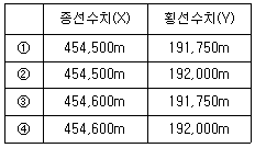 종선좌표(X)=454,600.37m, 횡선좌표(Y)=192,033.25m인 지적도근점을 포용하는 축척 1/600 지적도 좌측하단의 종ㆍ횡선 수치는?