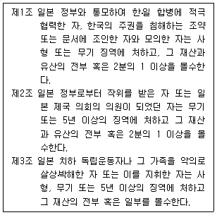 - ③ 이 법령에 따라 반민족행위자들이 실형을 선고받았다.