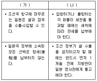 [과목 구분 없음] 조약 (가), (나) 사이 시기의 경제 상황으로 옳은 것은?