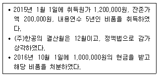 [과목 구분 없음] 다음 자료로 (주)한공이 인식할 유형자산처분손익을 계산하면 얼마인가? (단, 감가상각비는 월할계산한다.)