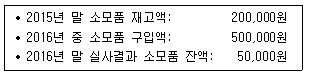 [과목 구분 없음] 다음의 경우 2016년 손익계산서에 기록되어야 할 소모품비는 얼마인가?