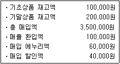 [과목 구분 없음] 다음 자료를 토대로 매출원가를 계산한 금액은 얼마인가?