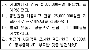 - 다: 현금을 인출하여 현금을 보유하게 되는 것은 회계상 거래 중 현금의 증가를 의미합니다.