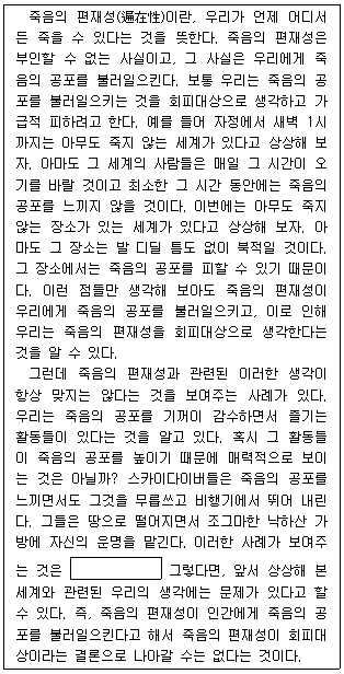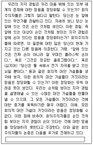 다음 글의 문맥상 빈 칸에 들어갈 진술로 가장 적절한 것은?