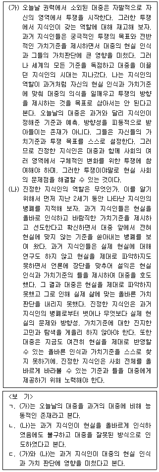 위 글의 (가)와 (나)에 대한 설명으로 옳은 것은?(39번 공통지문 문제)