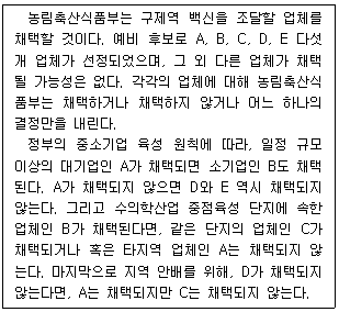 다음 글의 내용이 참일 때, 반드시 채택되는 업체의 수는?