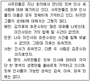 다음 글의 내용이 참일 때, 외부 인사의 성명이 될 수 있는 것은?