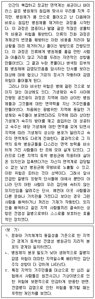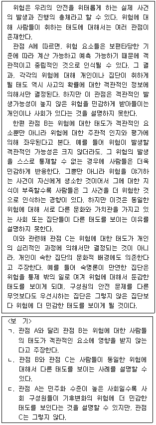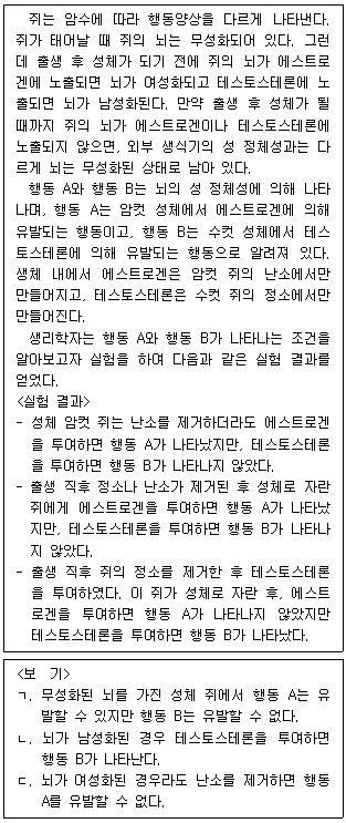 다음 두 전제가 모두 참이라고 할 때, 위 글에서 추론할 수 있는 것은?(39번 공통지문 문제)