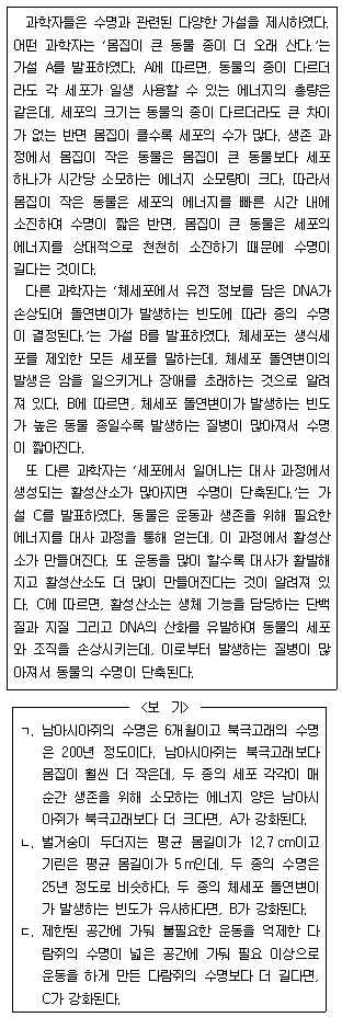 다음 글의 가설 A~C에 대한 평가로 적절한 것만을 <보기>에서 모두 고르면?
