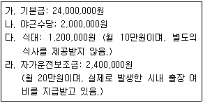 다음 자료를 이용하여 (주)한공의 영업팀에서 근무하는 김한공 씨의 2020년도 과세대상 근로소득을 계산하면 얼마인가?
