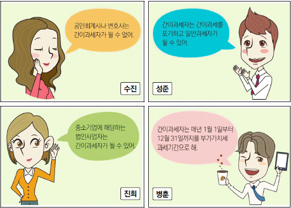 다음 중 부가가치세법상 간이과세자와 관련하여 잘못 설명하고 있는 사람은?