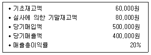 당기중 (주)한공의 자재창고에 화재가 발생하여 재고자산의 일부가 소실되었다. 다음 자료를 이용하여 화재로 인한 재고자산 손실 금액을 계산하면 얼마인가? (단, 화재 외의 원인에 의한 재고자산 손실은 없다고 가정한다.)