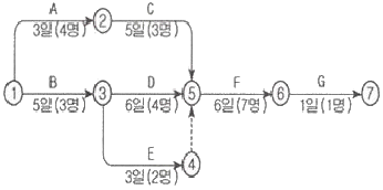 [건설시공 및 관리] 아래 그림과 같은 네트워크 공정표에서 전체 공기는?