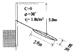 아래 그림에서 모래층에 어스앵커의 극한 저항은 몇 ton인가? (단, 콘크리트 그라우팅은 일정한 압력하에서 시공 되며, 정지토압계수는 K0이다)