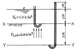 그림과 같이 물이 위로 흐르는 경우 Y - Y 단면에서의 유효응력은?