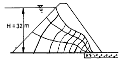 다음 그림과 같이 필터를 설치하여 만든 제방 100m길이당 침투 수량을 구하면? (단, 흙 댐의 투수계수는 0.085㎝/sec이다.)