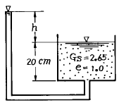 그림에서 수두차 h를 최소 얼마 이상으로 하면 모래시료에 분사현상이 발생하겠는가?