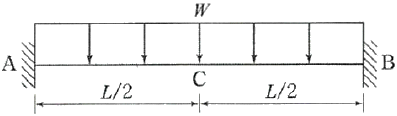 그림과 같은 보의 단부(A점)와 중앙부(C점)에서의 휨모멘트 비율 MA : MC는?