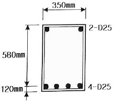 강도설계법에서 다음과 같은 직사각형 복근보를 건물에 사용 시 콘크리트가 부담하는 전단강도 øVC는? (단, λ=1, fck=35MPa, fy=400MPa)