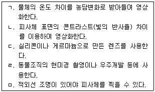 열화상(thermal) 카메라에 관한 설명으로 옳은 것을 모두 고른 것은?