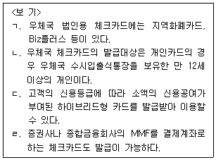 <보기>에서 체크카드에 대한 설명으로 옳은 것을 모두 고른 것은?