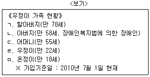 <보기>의 ‘우정이’ 가족이 가입할 수 있는 세금우대종합저축(생계형저축 제외)의 최대 가입금액은?